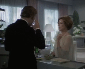 The third story, returning to a drama-filled situation, is “Visitors from London.” This story revolves around Diana Barrie (Smith), a British actress who is nominated for the first time for the Academy Award for Best Actress. A win could save her almost dead career, but she knows she doesn’t have a snowball’s chance in hell. The nomination isn’t where the drama in this story lies. The drama is with Diana’s marriage as she is in MAJOR denial. She is married to Sidney Cochran (Caine), who was a closeted gay man, but he is letting the world know he is gay now. Diana doesn’t deal well with this fact as she deeply loves Sidney, but the stress of the night is getting to her.