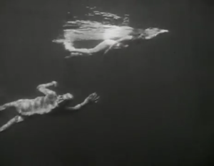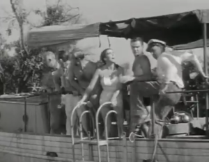 The evacuation gets underway, and nothing is found. Mark is ready to bounce, and David comes up with some scientific reasoning. Carl says that the river empties into a lagoon when Lucas says it is the “Black Lagoon” and no one has ever returned from there (dun dun dunnnnnnn). Rather than taking that as a notice to leave, they roll up in the lagoon. In the shadows, the “Gill-man” has been watching and waiting. When the “Gill-man” sees the beautiful Kay, it follows the Rita, hoping to take her for its own.
