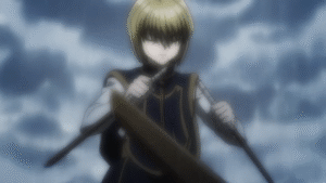 The film starts with Killua having a nightmare about his creepy ass brother, Illumi, who tells him to never make friends because they will betray him. Dude has some serious issues as an older brother. Killua wakes up and sees his homie Gon passed out on an airship, and remembers that Gon promised to never betray him. Gon is a real one. When the pair arrives at their destination, they meet Leorio, who tells them that he and Kurapika were investigating a rumor that a survivor of the Kurta Clan had been found. Kurapika and Leorio meet a young boy named Pairo, a childhood friend of Kurapika’s. Shit hits the fan when Pairo attacks him and steals his eyes. When Kurapika awakens with the others, he sees, through his stolen eyes, a man with the Phantom Troupe.